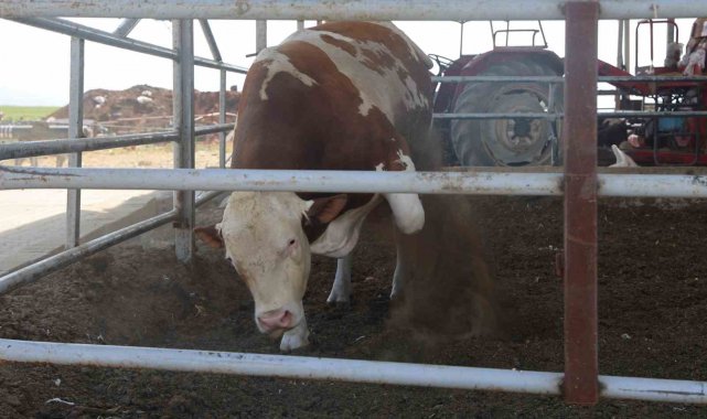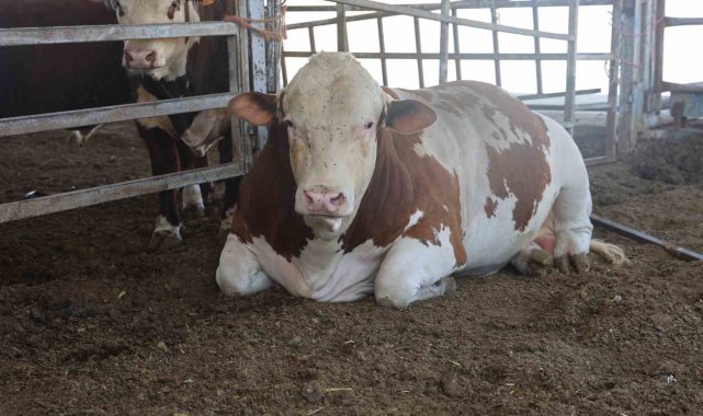 Fiyatı ve hırçınlığıyla ürküten bin 400 kiloluk devasa tosun servet değerindeki fiyatıyla alıcısını bekliyor