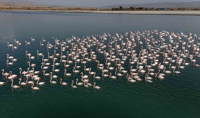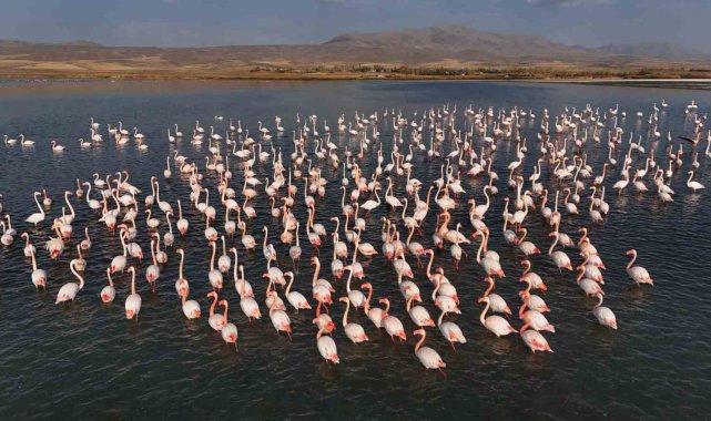 Doğunun saklı cenneti Van'daki Erçek Gölü, zarif misafirleri olan flamingoları ağırlamaya devam ediyor.