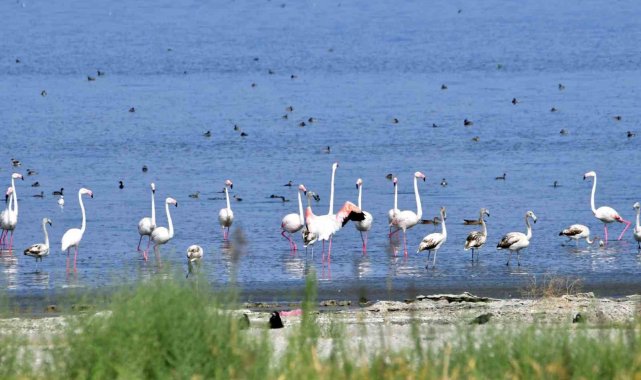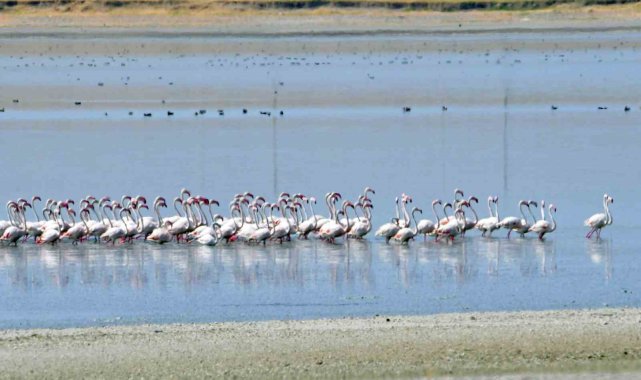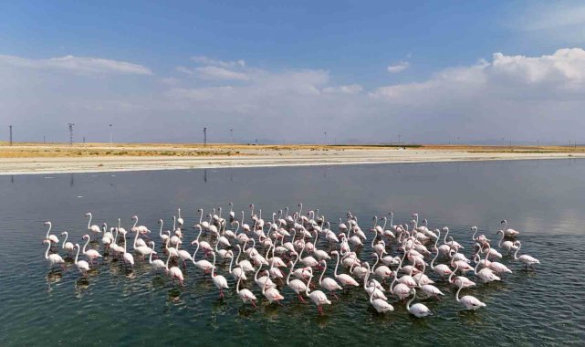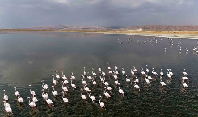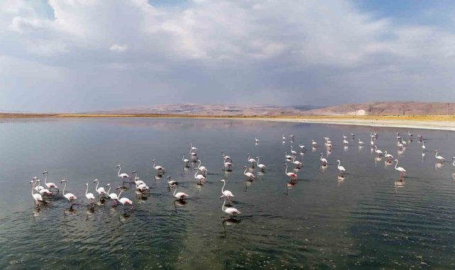 Flamingoların Van Gölü kıyılarında renkli dansı hayranlık uyandırıyor