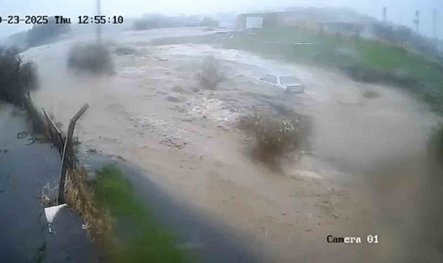 İzmir'in Foça ilçesinde, selde kaybolan 70 yaşındaki Bülent Kaptanoğlu'nun aracının sele kapıldığı anlar güvenlik kameralarına yansıdı.