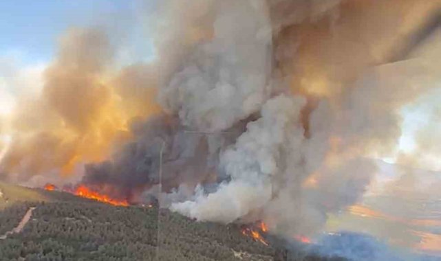 İzmir'in Foça ilçesinde bugün öğle saatlerinde başlayan orman yangını büyüyerek devam ediyor. Havadan ve karadan söndürme çalışmaları aralıksız sürüyor.