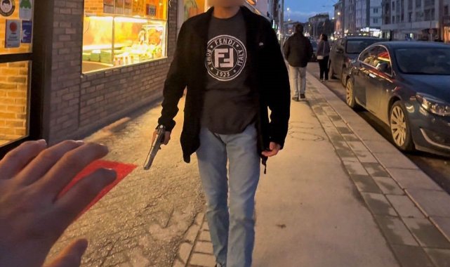 Fotoğrafını çekmek istediği şahıs silah çekti, korku dolu anlar kameraya yansıdı