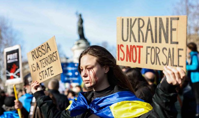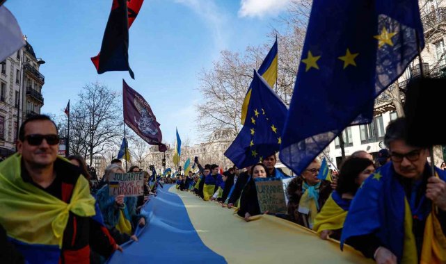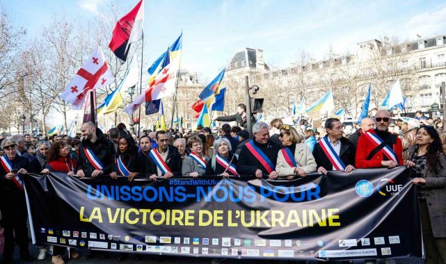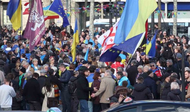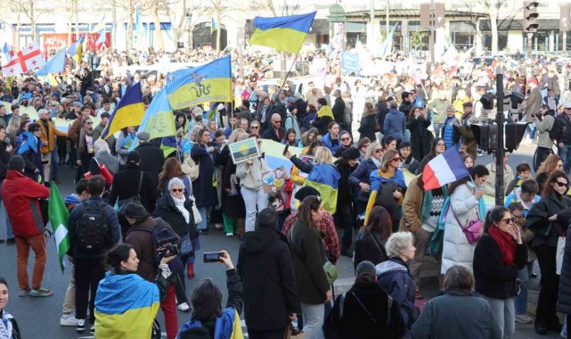 Fransa'nın başkenti Paris'te Rusya-Ukrayna savaşının 3'üncü yıl dönümü öncesi binlerce kişi sokağa indi. Republique Meydanı'nda toplanan göstericiler, Ukrayna ile dayanışma içinde olduklarını belirtti. Bastille Meydanı'na yürüyen göstericiler, 260 metre uzunluğunda Ukrayna bayrağı taşıdı. Rusya Devlet Başkanı Vladimir Putin'i protesto eden göstericiler, sık sık "Katil Putin" sloganı attı.