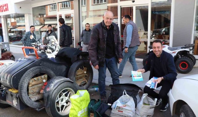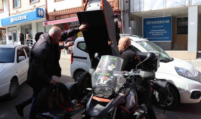 Fransa'dan motosikletiyle fakir çocuklara kalem taşıyor