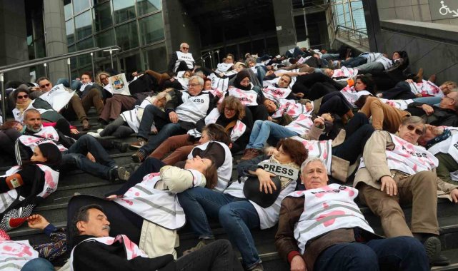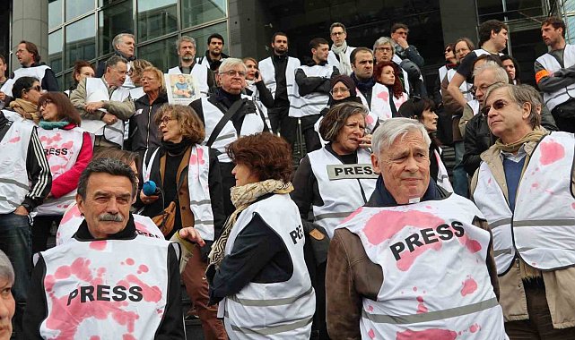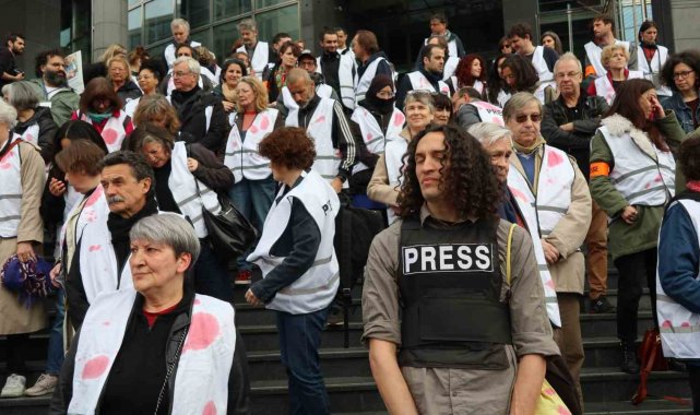 Fransa'nın başkenti Paris'te onlarca gazetece bir araya gelerek, İsrail saldırıları sonucu Gazze Şeridi'nde hayatını kaybeden meslektaşlarını andı. Bastille Meydanı'nda toplanan gazeteciler, üzerlerine öldürülen gazetecilerin kanını temsil eden kırmızı boya lekeleri bulunan ve "basın" yazılı beyaz yelekler giydi. İsrail saldırılarını protesto eden gazeteciler, saldırılarda hayatını kaybeden meslektaşlarının isimlerini okudu ve her okunan isimde bir gazeteci yere düştü.