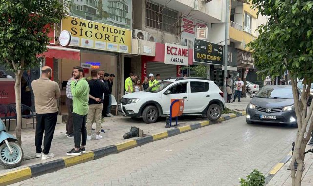 Hatay'da sürücünün fren yerine gaza bastığı otomobil, kaldırıma çıkarak önüne gelen her şeyi yıktı. Aracın kaldırıma çıktığı anlar ve bir iş yerine metreler kala durması kameraya yansıdı.