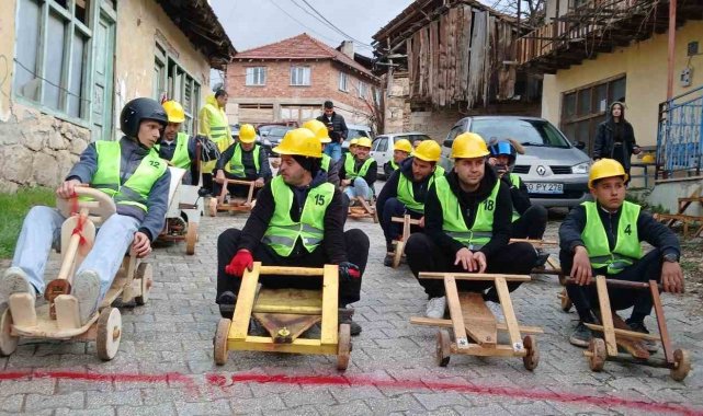 Fren yok, heyecan çok, geleneksel tahta araba yarışı nefesleri kesti