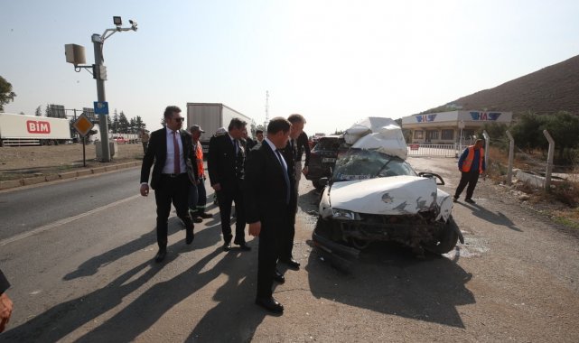 Hatay'da freni arızalanan kamyon, ışıkta bekleyen 8 araca çarparken kazada 4 kişi yaralandı. Vali Mustafa Masatlı da kaza alanında incelemelerde bulundu.