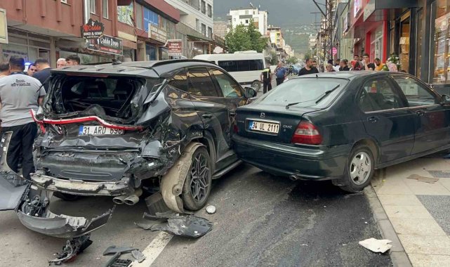 Olay, İskenderun ilçesi Denizciler Mahallesi'nde yaşandı. Freni arızalanan yaşayan kepçenin sürücüsü direksiyon hakimiyetini kaybetti. Yokuş aşağı ilerlediği esnada kontrolden çıkan kepçe, seyir halindeki ve park halindeki araçları biçti. Kazada 4 araç zarar görürken, kepçe sürücüsü hafif şekilde yaralandı. Kepçenin araçlara çarptığı anlar kameraya yansıdı.
