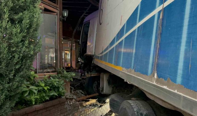 Hatay'da freni arızalanan tır, park halindeki vidanjöre çarptı. Tırın önüne kattığı araçla bir iş yerine daldığı anlar kameraya yansırken, sürücü yaşadığı korku dolu anları anlattı.