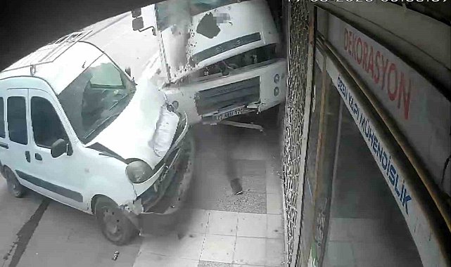 Kaza sonrası araçlarda ve iş yerinde maddi hasar meydana gelirken, polis olayla ilgili inceleme başlattı.