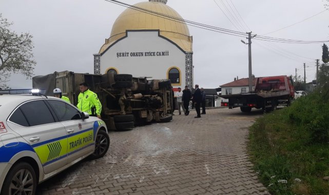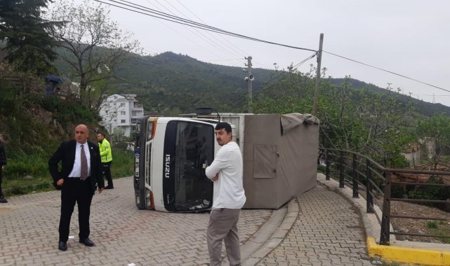 Kocaeli'nin Körfez ilçesinde büyük araç trafiğine kapalı olan yolda freni boşalan kamyonetin devrilmesi sonucu sürücü yaralandı.
