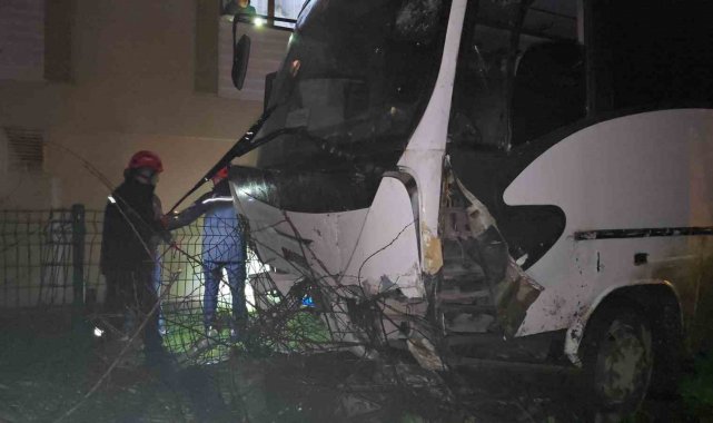 Zonguldak'ın Ereğli ilçesinde freni boşalarak kontrolden çıkan midibüs, önce park halindeki iki otomobile çarptı ardından da apartman boşluğuna düştü. Kazada midibüste bulunan 4 kişiden 2'si yaralandı.