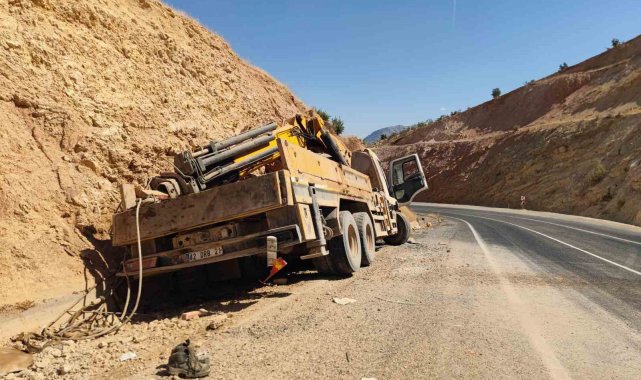 Siirt'te freni boşalan vinç, yol kenarındaki kayalıklara çarpması sonucu 1 kişi hayatını kaybetti, 1 kişi yaralandı.
