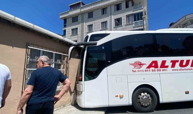 Freni boşalan yolcu otobüsü kayarak gecekonduya çarptı