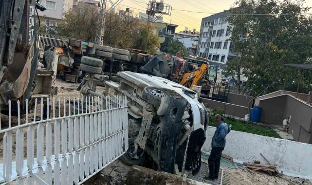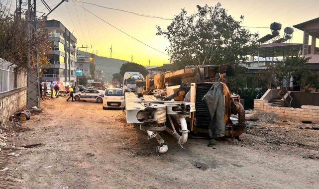 Hatay'da freni patlayan beton mikseri pompasının bulunduğu kamyon, kepçeyi ve pikabı biçti. Kazada; 4 kişi yaralandı.