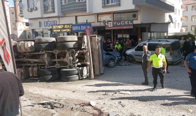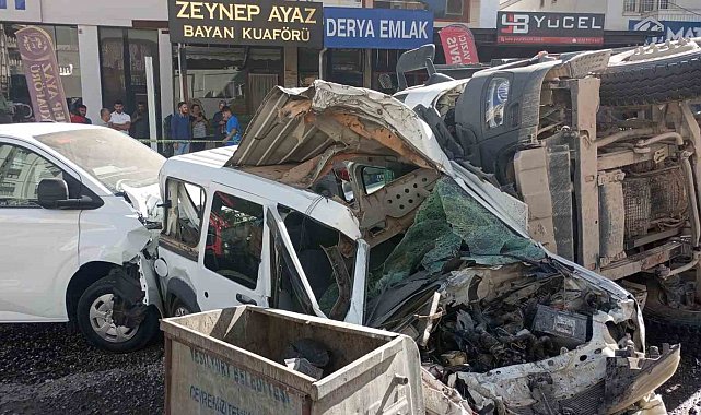Freni patlayan mıcır yüklü hafriyat kamyonu ortalığı savaş alanına çevirdi