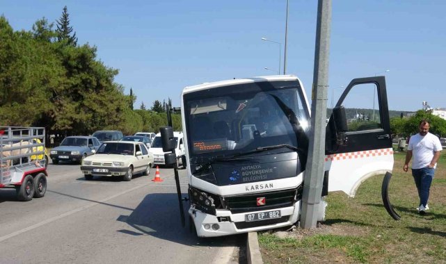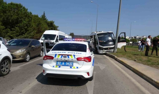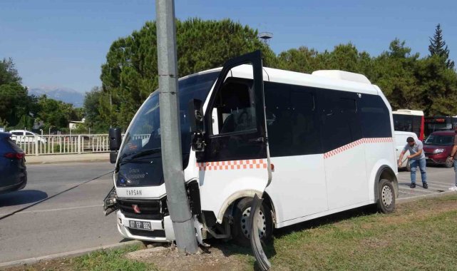 Antalya'da freni patlayan halk minibüsü önce kırmızı ışıkta bekleyen araca, ardından refüjdeki aydınlatma direğine çarptı. Kazada minibüs sürücüsü ve araçta bulunan 3 yolcu yaralandı.