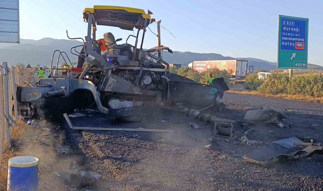 Freni patlayan mısır yüklü tır asfalt makinasına çarptı