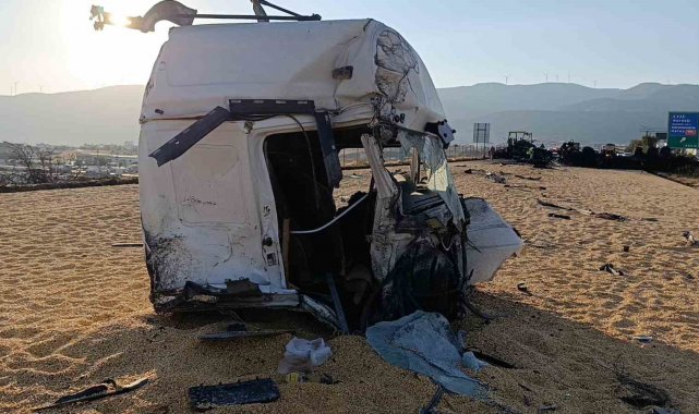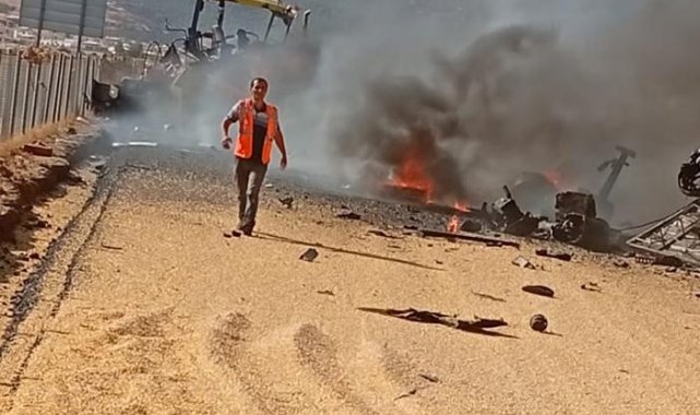 Gaziantep'te freni patlayan tır, yol çalışması yapan iş makinasına çarptı. Kazada tır paramparça olurken, araçlarda yangın çıktı. Sürücüler son anda araçtan atlayarak kurtuldu.