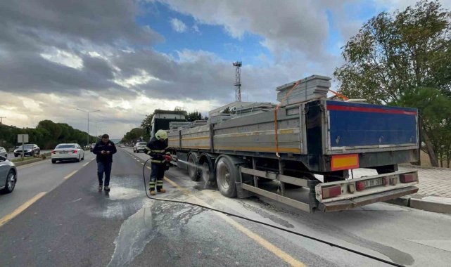 Muğla'nın Menteşe ilçesi Atatürk Bulvarında seyir halindeyken fren tutmayan 48 DM 368 plakalı mermer yüklü TIR'ın balatalarında yangın çıktı. İtfaiye ekipleri yangını kısa sürede söndürdü.
