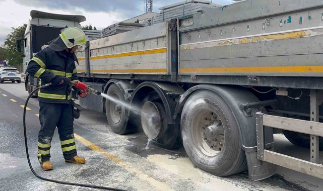 Atatürk Bulvarı'nda seyir halindeki mermer yüklü 48 DM 368 plakalı TIR'ın arka lastiklerinden duman çıkmaya başlayınca durum 112 Acil Çağrı Merkezine bilgi verildi. TIR'ın freni tutmaması nedeniyle freni zorlayan sürücü balataların yanmasına neden oldu. Olay yerine gelen Muğla Büyükşehir Belediyesi itfaiye ekipleri dumanları köpük sıkarak söndürdü.
