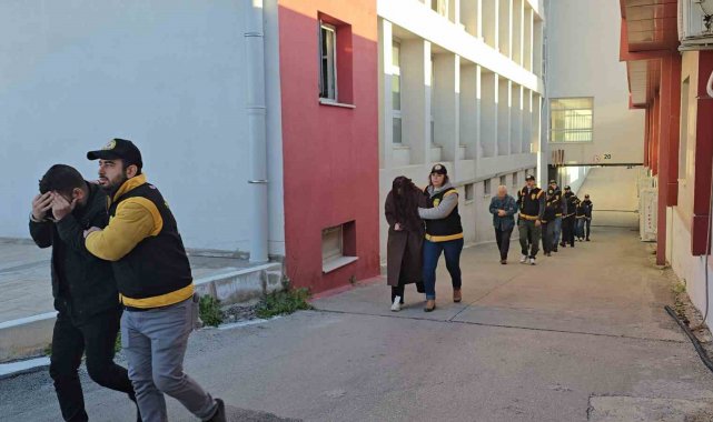 Emniyetteki işlemlerinin ardından adliyeye sevk edilen şüphelilerden 4'ü kadın 14 kişi tutuklandı, 1'i ise adli kontrol şartıyla serbest kaldı.