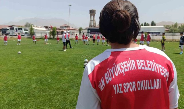 Van Büyükşehir Belediyespor, 8-13 yaş arası çocuk ve gençlere, yaz tatilinde uzman eğitmenler eşliğinde spor yapabilme imkânı sağlıyor. Bu kapsamda Van Büyükşehir Belediyesi Makine İkmal Yerleşkesinde yer alan çim sahada 7 uzman antrenör ile hafta içi 3 günü süren antrenmanlarda, öğrenciler futbol temel eğitimi alıyor.