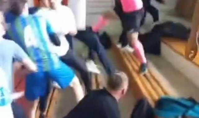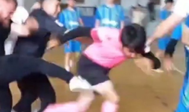 Kahramanmaraş'ta okullar arası futsal turnuvasında öğretmen ve hakem arasında yumruklu kavga çıktı. Kavga anları amatör kameralar tarafından saniye saniye kayda alındı.