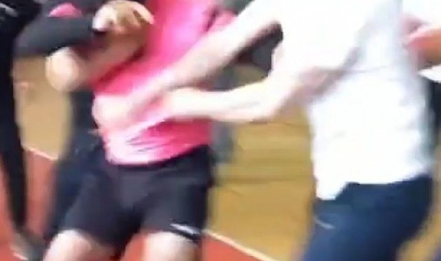 Futsal turnuvası boks ringine döndü: Hakem ve öğretmen arasında kavga anı kamerada