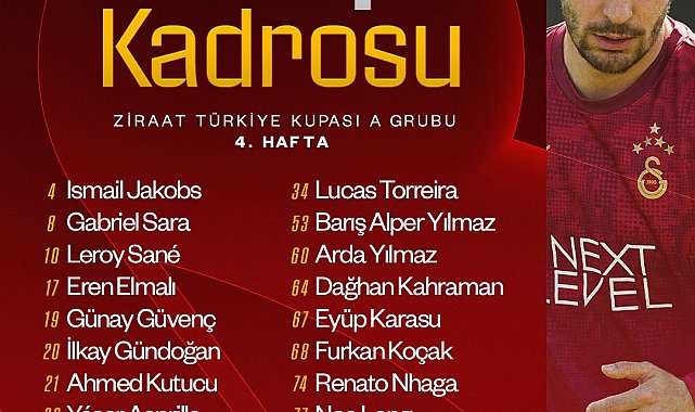 Ziraat Türkiye Kupası A Grubu 4. ve son hafta maçında yarın deplasmanda Corendon Alanyaspor ile karşılaşacak Galatasaray'ın maç kadrosu belli oldu.