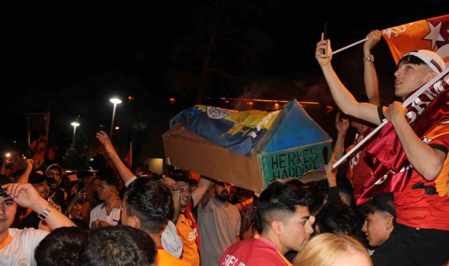 Trendyol Süper Lig'de Galatasaray'ın Kayserispor'u mağlup ederek şampiyonluğunu ilan etmesinin ardından Kayseri'de Galatasaray taraftarları şampiyonluğu doyasıya kutladı. Şampiyonluk kutlamalarına Fenerbahçeli taraftarlar da katılırken, Galatasaraylılar Fenerbahçe'nin tabutunu taşıdı.