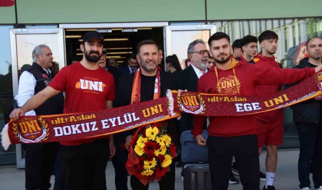 Galatasaray, Trendyol Süper Lig'in 27. hafta erteleme maçında yarın Göztepe ile oynayacağı karşılaşma için İzmir'e geldi. Sarı-kırmızılılara havalimanında taraftarlar yoğun ilgi gösterdi.