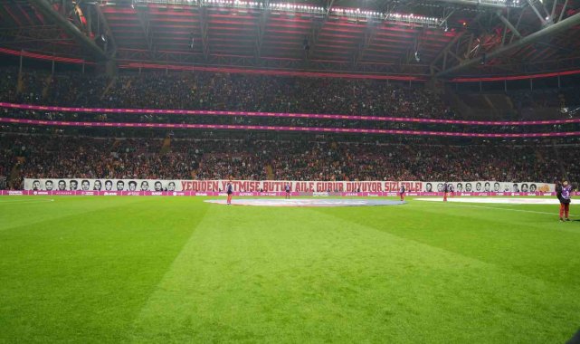 Galatasaraylı taraftarlar ayrıca Doğu Tribününde Teknik Direktör Okan Buruk ve futbolcuların görsellerinin yer aldığı bir pankart daha açtı ve 'Yediden yetmişe bütün aile gurur duyuyor sizlerle!' yazısını ekledi.