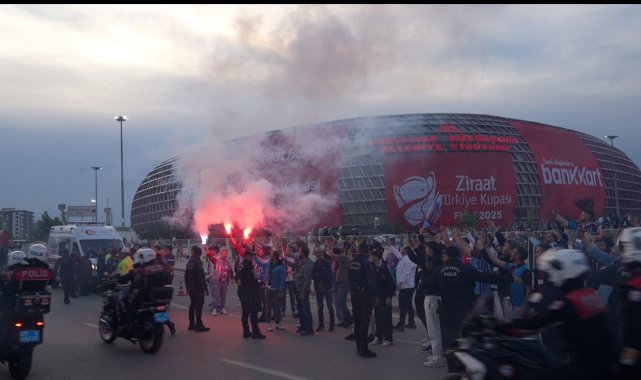 Galatasaray ve Trabzonspor, 63. Ziraat Türkiye Kupası'nın sahibi olmak için saat 20.45'te karşı karşıya gelecek. Zorlu maç öncesi Galatasaray ve Trabzonspor kafileleri, konakladıkları otelden maçın oynanacağı Gaziantep Büyükşehir Belediye Stadı'na geldi. Yoğun güvenlik önlemleri ve polis eskortu eşliğinde stada gelen Galatasaray ve Trabzonspor'u taraftarlar coşkulu bir şekilde karşıladı.