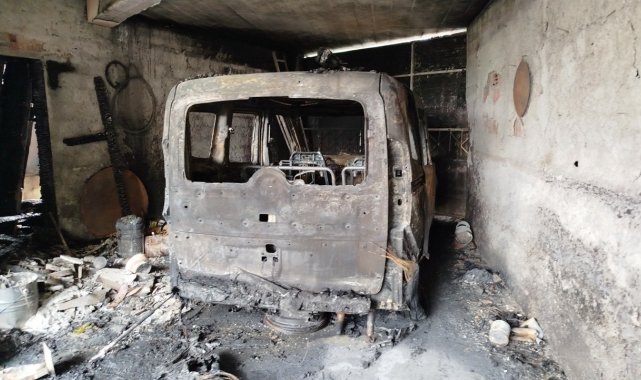 Garajda alevlere teslim olan 2 araç ve motosiklet kullanılmaz hale geldi