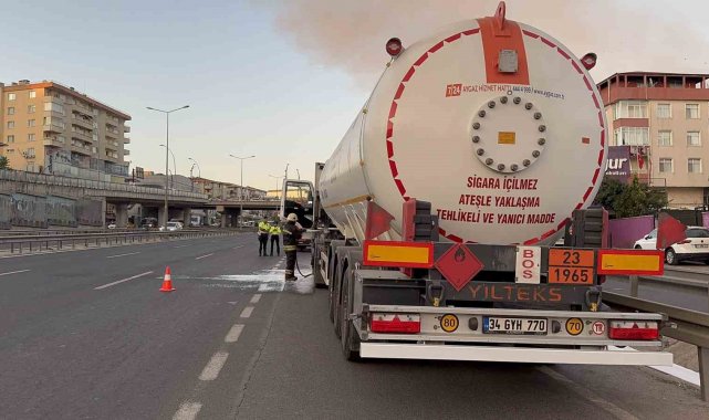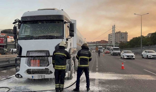 Kocaeli D100 Karayolu'nda gaz yüklü tankerin motor kısmında çıkan yangın korkuya sebep oldu, alevler itfaiye ekipleri tarafından söndürüldü.
