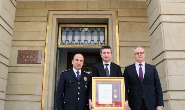 Eskişehir'de Gazi Polis Memuru Hasan Alpak'a Vali Hüseyin Aksoy tarafından Devlet Övünç Madalyası ve Beratı takdim edildi.