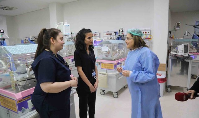 Gaziantep Büyükşehir Belediye Başkanı Fatma Şahin, Kahramanmaraş merkezli 6 Şubat'ta meydana gelen iki depremin ardından hemşirelerin 14 Mart Tıp Bayramını kutlamak için İnayet Topçuoğlu Hastanesi'ni ziyaret etti