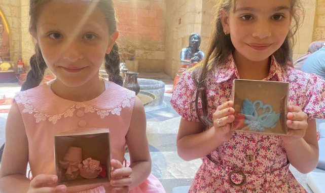 Gaziantep Büyükşehir Belediyesi'ne bağlı Hamam Müzesi'ndeki sabun atölyesinde çocuklar için sabun yapımının incelikleri öğretiliyor.
