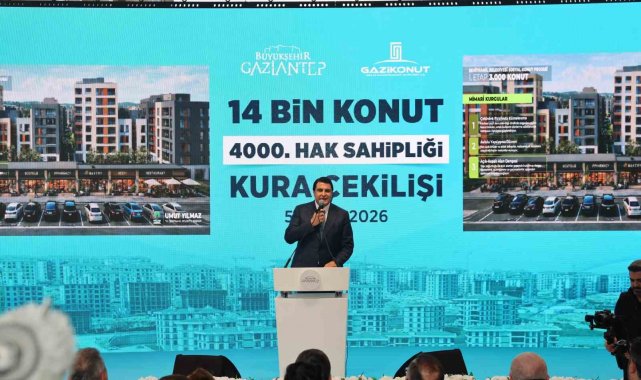Cumhurbaşkanı Yardımcısı Cevdet Yılmaz'ın katıldığı törenle, Gaziantep Büyükşehir Belediyesi'nin devam eden 14 Bin Konut Projesi kapsamında Güneyşehir'deki 4 bininci konutun hak sahibi belirlendi.