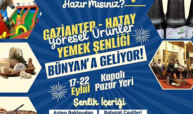 17-22 Eylül tarihleri arasında Bünyan Kapalı Pazar Yeri'nde gerçekleştirilecek olan şenlikte; yöresel tatlar, kültürel zenginlikler ve eğlenceli etkinlikler vatandaşlarla buluşacak. Şenlikte 81 ilden gelen yöresel lezzetler vatandaşların beğenisine sunulacak. Program kapsamında ücretsiz çiğ köfte ikramı yapılacak, çocuklar için oyun alanları kurulacak. Ayrıca sıra gecesi ve müziklerle katılımcılar keyifli vakit geçirecek.