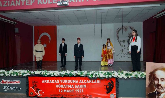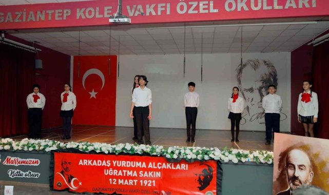 Gaziantep Kolej Vakfı Özel Okulları Konferans Salonunda düzenlenen ve GKV Özel Ortaokulu öğrencileri tarafından hazırlanan "12 Mart İstiklal Marşı'nın Kabulü ve Mehmet Akif Ersoy'u Anma" törenine, Gaziantep Kolej Vakfı Mütevelli ve Yönetim Kurulu Başkanı Esra İbanoğlu, GKV Mütevelli ve Yönetim Kurulu Üyeleri, Gaziantep Kolej Vakfı Özel Okulları Genel Müdürü Fevzi Gürsel, idareci, öğretmen ve öğrencilerin yanı sıra çok sayıda davetli katıldı.