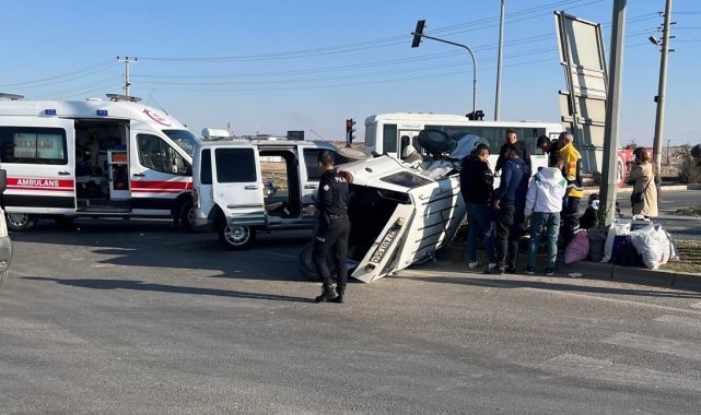 Gaziantep'in Nizip ilçesinde kavşağa kontrolsüz giren otomobile hafif ticari aracın çarpması sonucu 14 kişi hafif şekilde yaralandı. Feci kaza saniye saniye güvenlik kamerasına yansıdı.