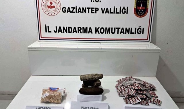 Gaziantep İl Jandarma Komutanlığı Narkotik Şube Müdürlüğü, İstihbarat Şube Müdürlüğü ve Şehitkâmil İlçe Jandarma Komutanlığı ekipleri ve Cumhuriyet Başsavcılığı koordinesinde uyuşturucu ve uyarıcı madde ile mücadeleye yönelik operasyon yapıldı. Operasyon çerçevesinde, uyuşturucu ticareti yaptığı tespit edilen E.E.N. isimli şahıs Şahinbey ilçesinde, A.A. isimli şahıs ise Şehitkâmil ilçesinde yakalandı. Şahısların işyerinde ve ikametinde yapılan eş zamanlı aramalarda 22 kilogram reçine esrar maddesi, 125 bin adet captagon hap imal edilebilecek 22 kilogram hammadde, 7 bin 500 adet captagon hap, 2 bin 938 adet sentetik hap, 2 adet hassas terazi ile 6 bin 430 TL suçtan elde edilen para ele geçirildi.