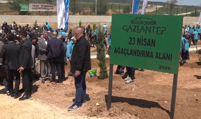 Gaziantep'te, 23 Nisan Ulusal Egemenlik ve Çocuk Bayramı etkinlikleri çerçevesinde fidan dikme programı düzenlenerek yüzlerce fidan toprak buluşturuldu.