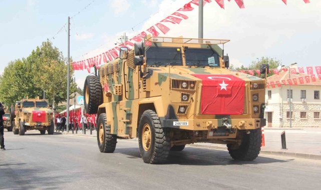 Törende halk oyunları gösterisinin ardından Gaziantep İl Jandarma Komutanlığı Asayiş Komando Bölük Komutanlığı'nın yanı sıra Jandarma Özel Harekat Timleri ile diğer askeri birlikler ve İl Emniyet Müdürlüğü ekipleri tören geçişi yaptı. Törende yerli ve milli askeri araçların geçişi büyük alkış topladı. Yüzlerce öğrenci ve vatandaş tarafından izlenen geçiş, büyük bir beğeniyle izlendi.
