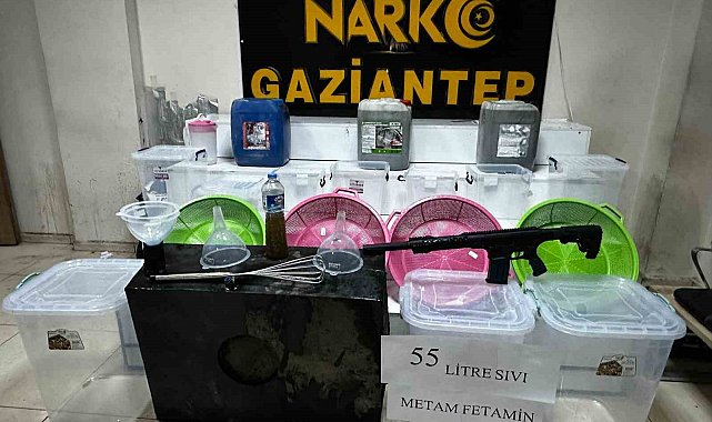 Gaziantep'te polis ekiplerinin operasyonu sonucunda 55 litre sıvı metamfetamin ele geçirildi, 3 şahıs tutuklandı.