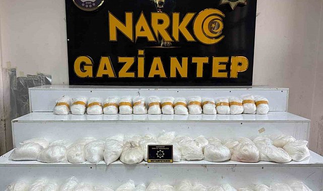 Gaziantep İl Emniyet Müdürlüğü Narkotik Suçlarla Mücadele Şube Müdürlüğü ekipleri ve Cumhuriyet Başsavcılığı koordinesiyle uyuşturucu tacirlerine yönelik operasyon yapıldı. Operasyon çerçevesinde, şüpheli bir araç durduruldu. Araçta yapılan hassas burunlu dedektör köpek destekli adli aramalarda 58 kilo 450 gram metamfetamin ele geçirildi. Olayla ilgili 2 şüpheli yakalandı.