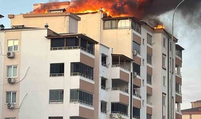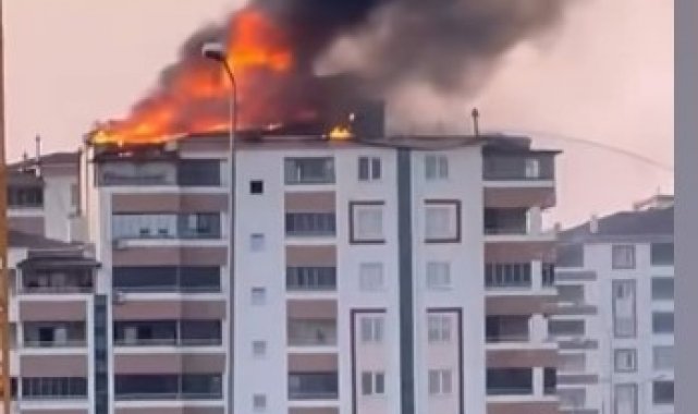 Gaziantep'te 7 katlı bir binanın çatısı alev alev yandı. Kısa sürede büyüyüp çatıyı saran ve paniğe neden olan yangın, itfaiye ekiplerinin müdahalesiyle söndürüldü.